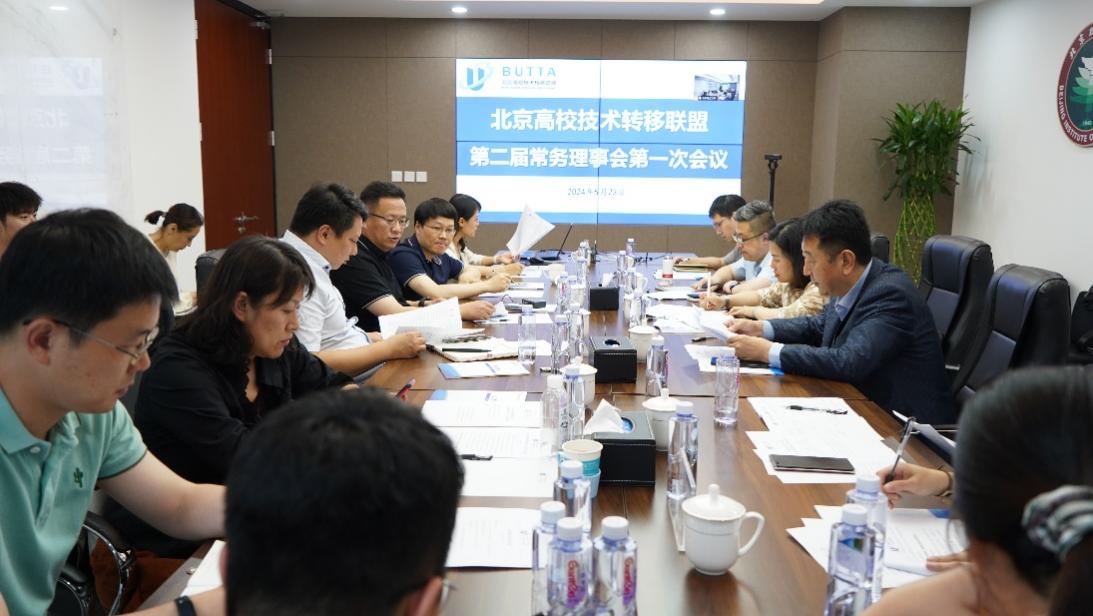 2024年5月23日下午,北京高校技术转移联盟第二届常务理事会第一次会议在北京理工大学顺利召开。来自联盟理事长单位、联席理事长单位和副理事长单位的约20位代表出席会议,联盟部分理事单位的代表通过网络连线方式列席本次会议。